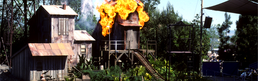 R&SE scope of work included engineering, design, fabrication and installation of show action equipment for Universal’s high-speed action packed theme show, Miami Vice. The Miami Vice Action Spectacular includes a full scale attack helicopter, a collapsing guard tower and a gravity ride system that launches two stuntmen into the air from an exploding mine car. Additional show action features include a collapsing wall & ceiling, buckling floor, fireball,